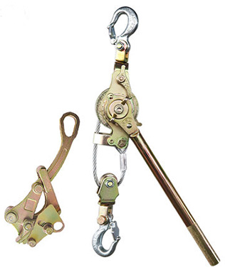 電力施工機具緊線器應用時先把緊線器上的鋼絲繩或鍍鋅鐵線松開,并固定不動在橫擔上,用夾線鉗夾住導線,隨后擰動專用型板手。因為棘爪的防大逆轉功效,慢慢把鋼絲繩或鍍鋅鐵線繞在棘輪扳手滾桶上,使導線縮緊。把縮緊的導線固定不動在絕緣子上。隨后先松開棘爪,使鋼絲繩或鍍鋅鐵線松開,再松開夾線鉗,最終把鋼絲繩或鍍鋅鐵線繞在棘輪扳手的滾桶上。緊線器能夠提升貨運運輸起重吊裝全過程中的安全系數。